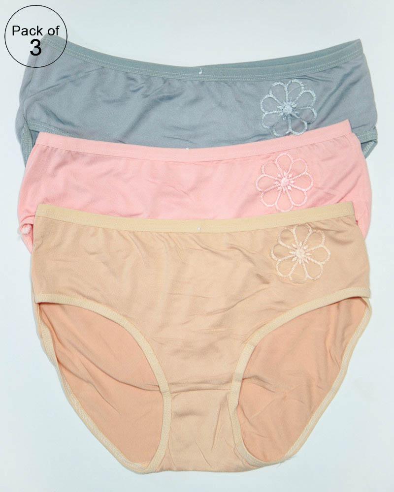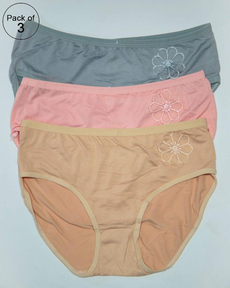 Pack of 3 Womens Cotton Plain Panties – AF-118 – Mix Colors